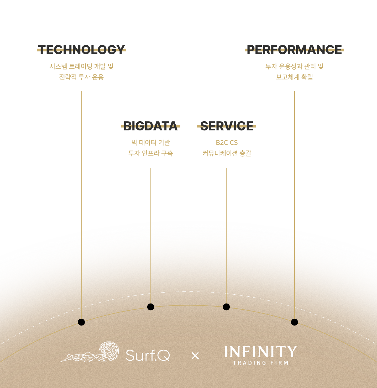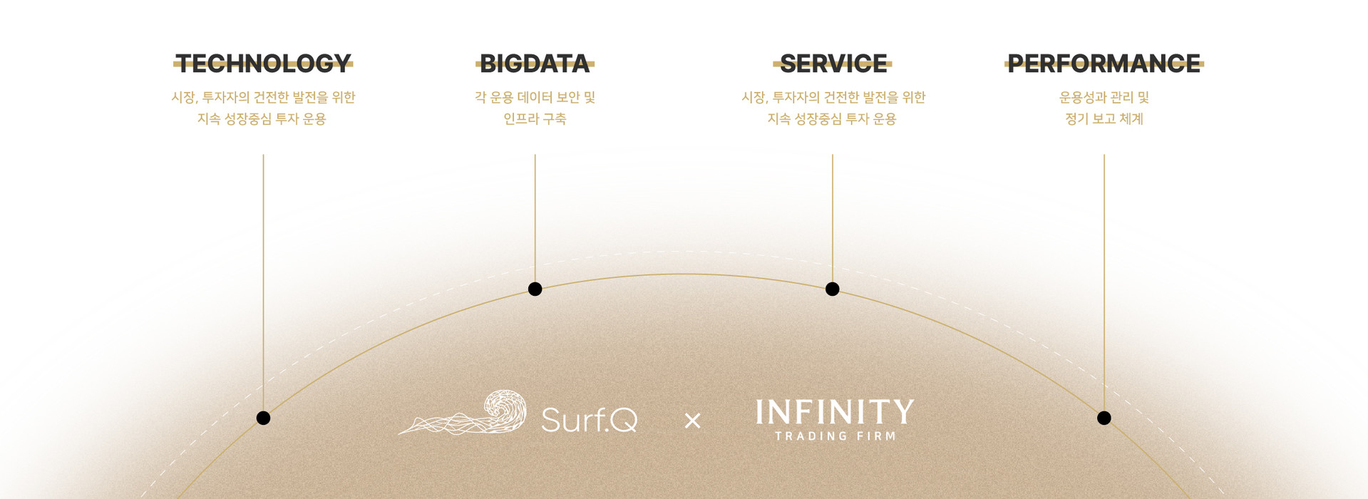 Infinity Trading Firm은 JUNDA의 Surf.Q 서비스 B2C 독점 영업 서비스 플랫폼으로서 변화하는 트레이딩 시작 속 혁신적인 솔루션과 신뢰를 기반으로 고객 여러분께 새로운 가치를 전달하고자 합니다. 또한 우리는 단순히 서비스를 제공하는 회사를 넘어, 투명하고 지속 가능한 금융 생태계의 동반자로 성장하며, 더 나아가 기술과 시장, 투자자가 모두 발전하는 지속적인 진화를 이루고자 함에 목표를 두고 있습니다. Surf.Q와 함께, 개인과 기업이 모두 더 나은 트레이딩 환경을 경험하도록 끊임없는 도전과 혁신을 이어나갈것을 약속 드립니다. 감사합니다.