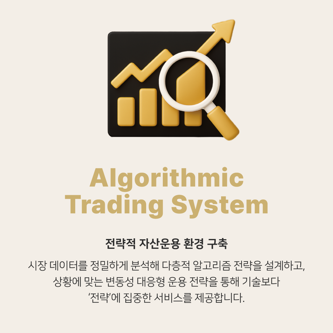 머신러닝 기반 자동 매매 기술을 통해 안정적인 수익률과 투명한 거래 경험을 구현하며, 누구나 신뢰할 수 있는 시스템 트레이딩의 표준을 만들어가고 있습니다.