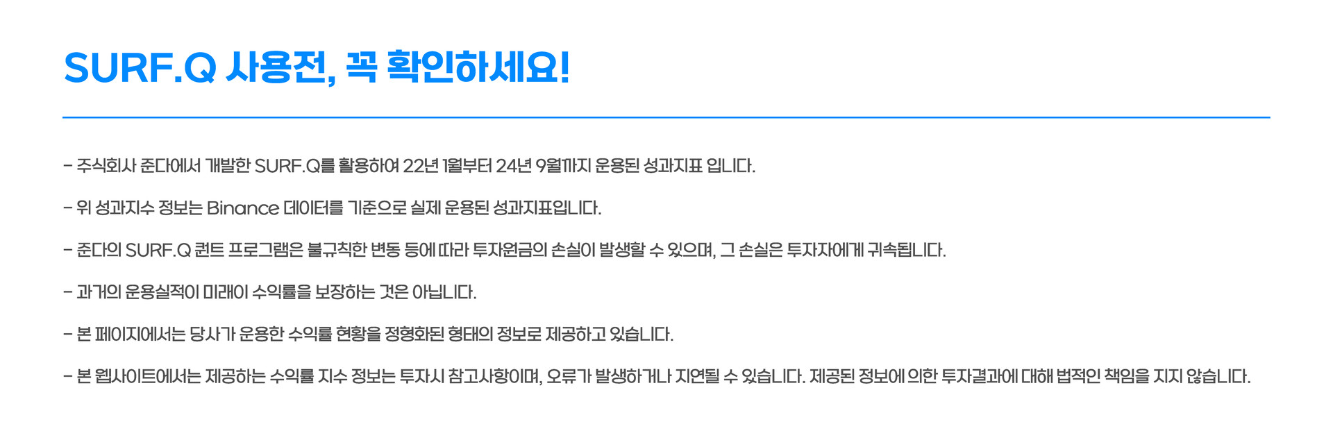 손해사정사 00님늘 위험과 손실만 보던 제게 SURF.Q는 새로운 경험이었습니다. 변동성 장세에서도 리스크가 통제된 채 수익이 쌓이며 처음으로 자산이 안전하게 관리된다는 안도감을 얻었습니다.